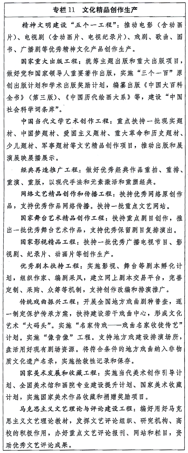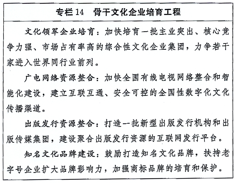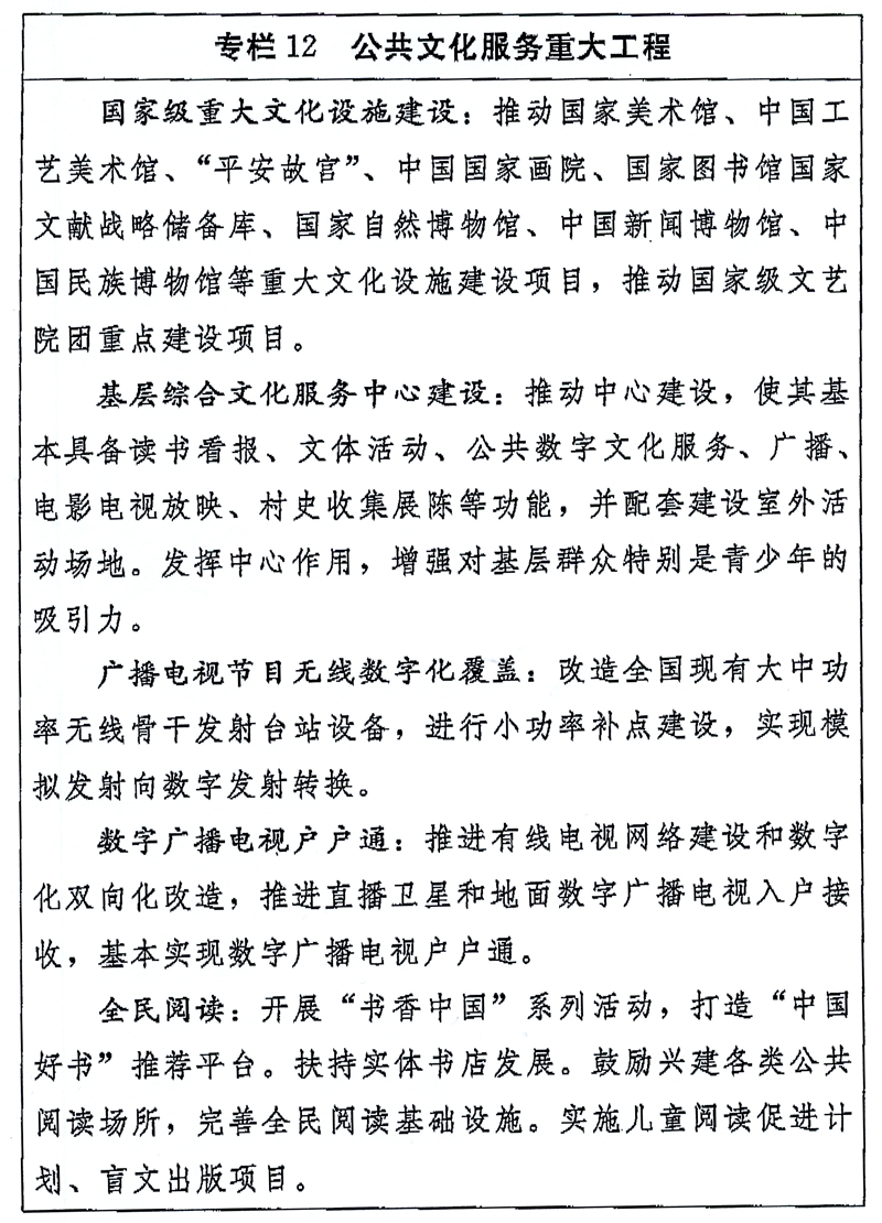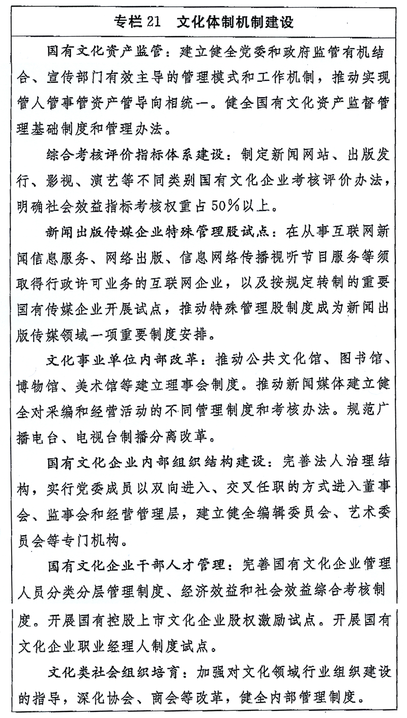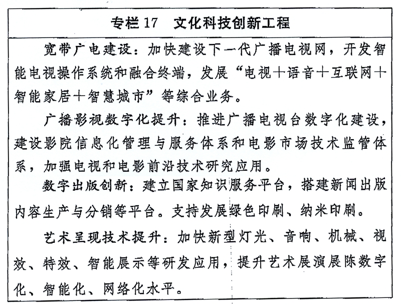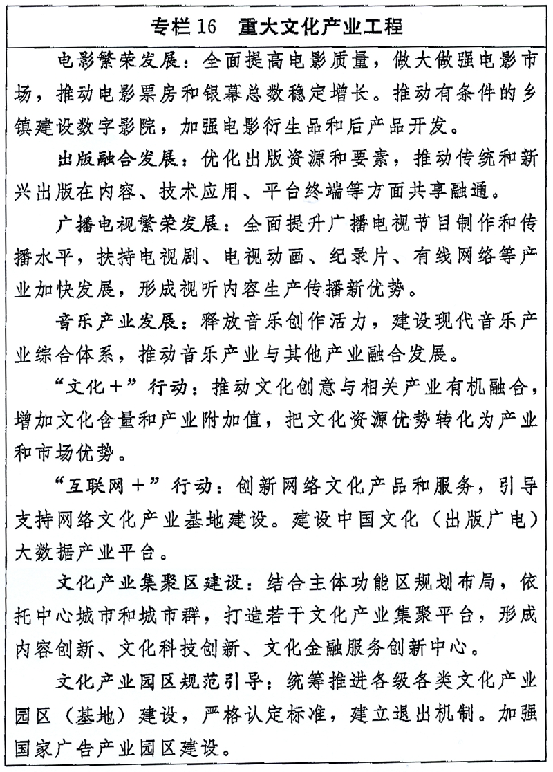国家“十三五”时期文化发展改革规划纲要